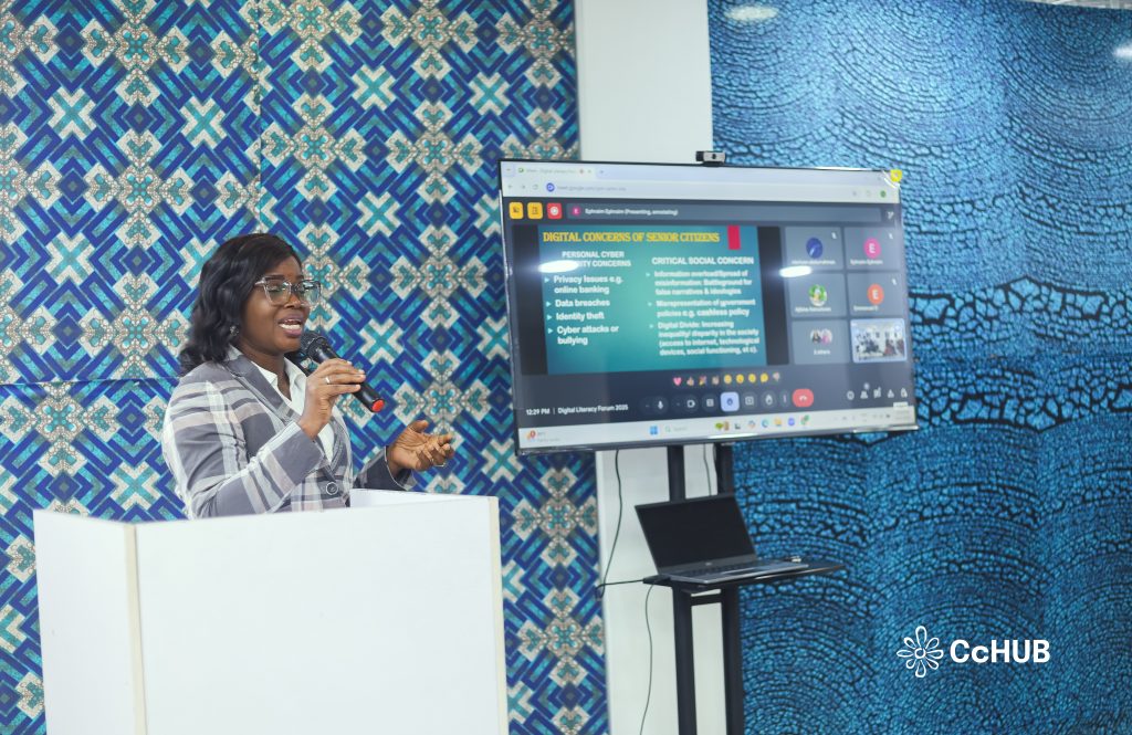 The conversation soon evolved to discuss to the unique challenges faced by vulnerable populations. Adesola Oguntimeyin, Founder of Cyber Patron Network, offered a fresh perspective on the risks older adults face as they increasingly rely on digital platforms for social connection, managing finances, and accessing healthcare. She shared the need for comprehensive and accessible digital literacy programs that blend strong government guidance with community-driven initiatives. Her challenge to the forum was both direct and thought-provoking.